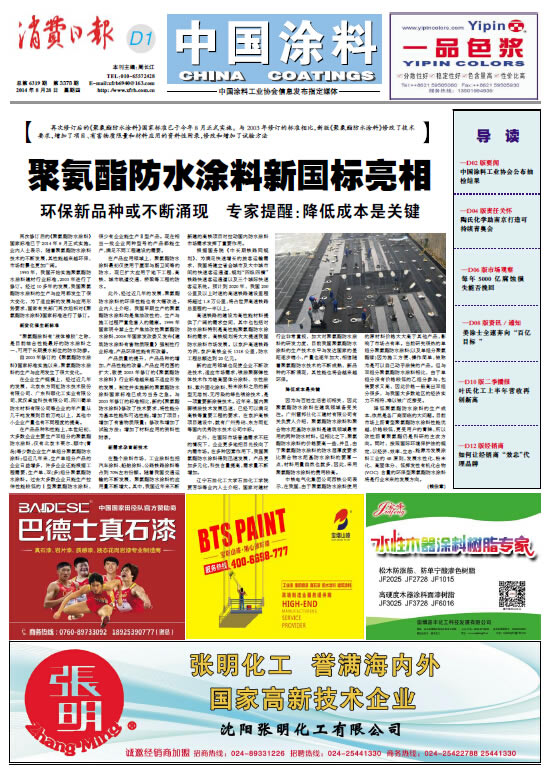 中國涂料報 2014年8月28日 星期四