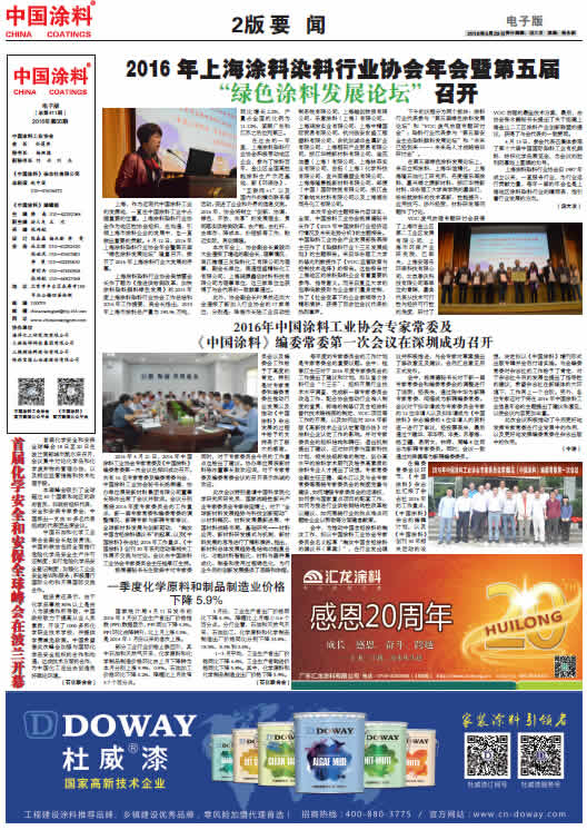 中國涂料報(bào) 2016年4月29日