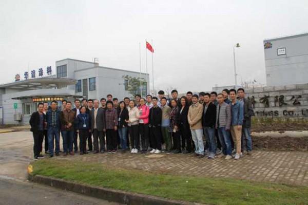 給全體參觀者印象較深的是公司健康環保、節能減排理念的重視和實施,總的是采用當前先進密閉式工藝流程布局方式;注重自動化和降低勞動強度,采用DCS控制系統和在線監測系統及自動包裝;提高物料配比的準確性和可追溯性,保證產品質量。這在一定程度上代表了當前涂料工藝,發展的新趨勢,給全體學員一次生動深刻而在課堂上得不到的收獲。隨后又參觀了華原化工廠——助劑廠(原長風化工廠)。一次現場教學活動在較充實的感覺中結束。